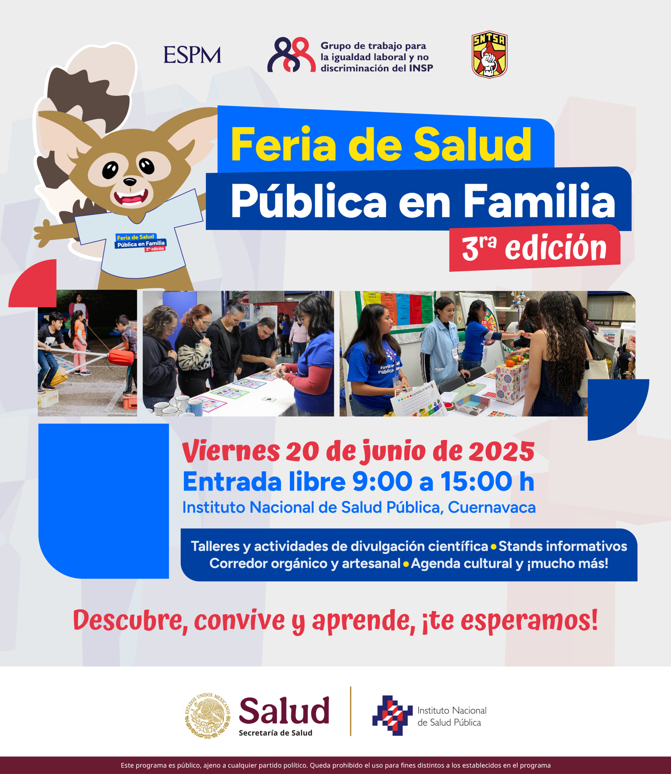 Te invitamos a la 3ra edición de la Feria de Salud Pública en Familia, una jornada gratuita y abierta al público en las instalaciones del INSP en Cuernavaca, Morelos.