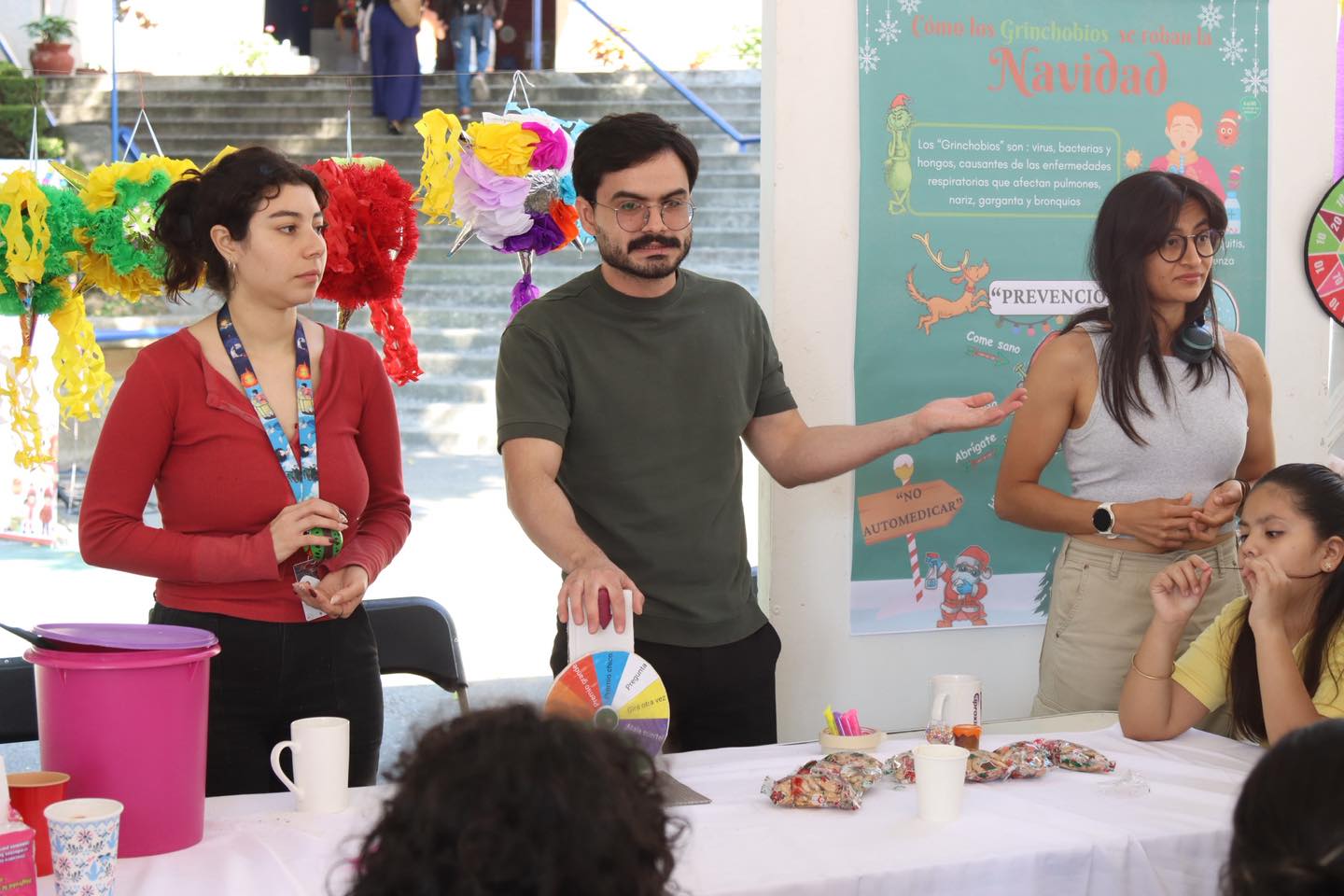 Siguiendo puntualmente el programa diseñado para esta edición, la Posada inició con una inauguración oficial que dio paso a un recorrido libre por stands interactivos, talleres lúdicos y espacios comunitarios. Durante más de una hora, las y los estudiantes exploraron contenidos clave de prevención y promoción de la salud a través de stands dedicados al uso adecuado de antibióticos, la resistencia antimicrobiana, la vacunación, la salud bucal, así como una ambulancia y actividades de primeros auxilios, gracias a la participación coordinada de distintas áreas de la ESPM y de los Servicios de Salud de Morelos.